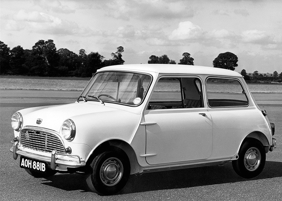 因为英国对埃及的行动失败,苏伊士运河又是中东向西欧输送石油的要道,于是英国的石油情况开始变得紧张。英国油价走高,英国人民逐渐支付不起汽油而开不起开车。这时为了应对危机,英国汽车公司BMC决定生产一辆经济省油的小型车,于是命令设计主管停掉之前的所有工作,全心全意投入到新车的设计中。于是在设计主管的脑海中,一台在能够搭载4人以及少量行李的小尺寸车逐渐酝酿成型。